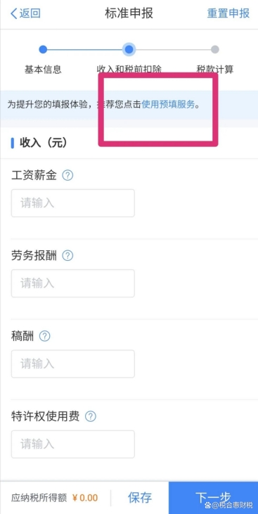 (3)重要提醒:如果填报空白申报表时有困难,请点击“使用预填服务”再次选择使用申报表项目来预填服务。