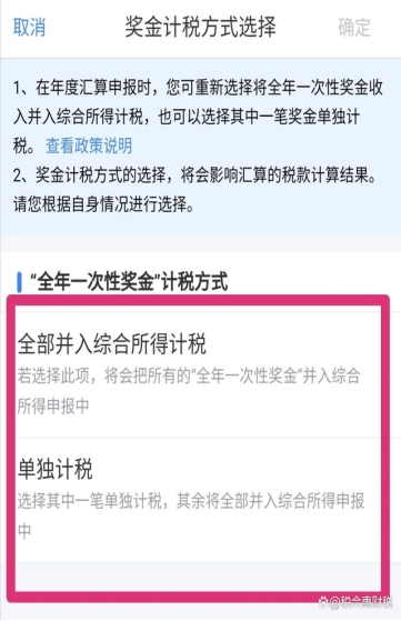 ②奖金有两种计税方式,可以选择全部并入到综合所得,也可以作为年度一次性奖金单独计算,需自行依据情况选择。