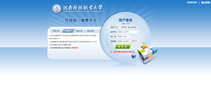 校园统一支付平台是针对在校生进行网上缴费的一个收费系统。在校生能随时随地通过本系统缴纳学费,并能够实时查询项目欠费和已缴费情况。